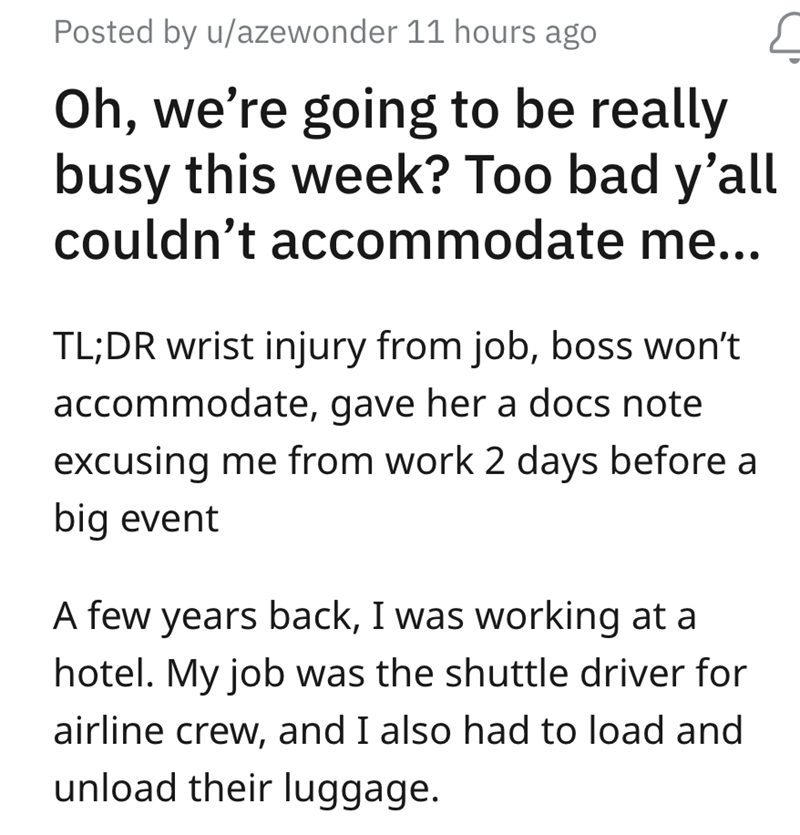 'Have fun': Boss lives to regret not accommodating injured worker before busiest day of the year
