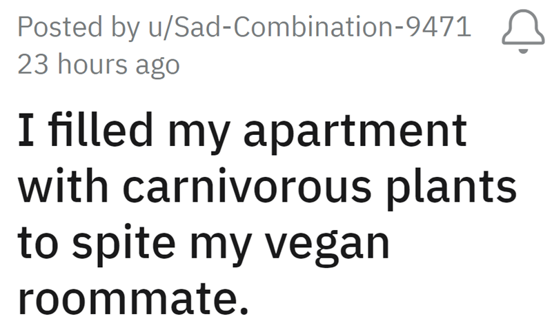 'She was livid': Woman fills apartment with carnivorous plants to spite her vegan roommate