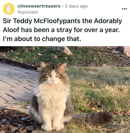 Sir Teddy McFloofypants Goes From Stray to HoMEOWner After Wandering the Streets for a Year