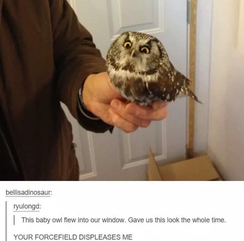 They say that owls are wise creatures, but as it turns out, they can also hold a grudge. This owl is not happy about this person's window and it blocking their path, as well as providing it with a large bump on its cute little noggin. Not appreciated!