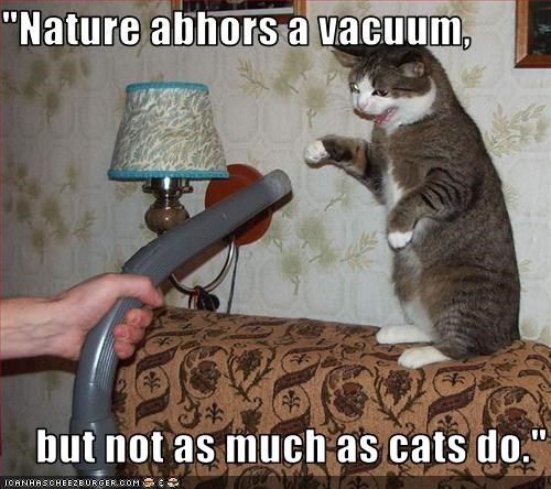 "Nature abhors a vacuum, but not as much as cats do."