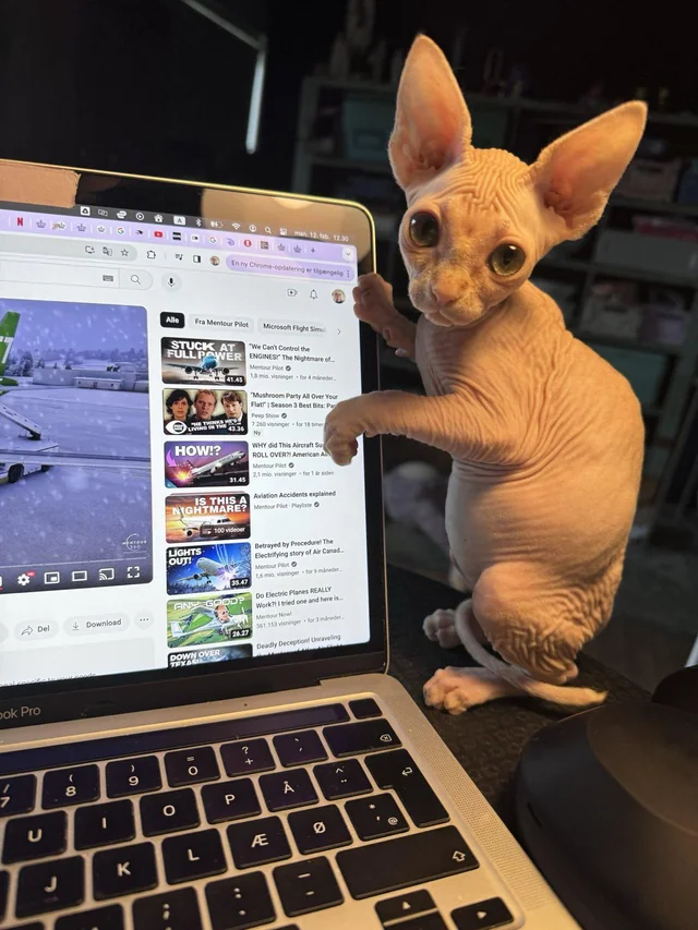 "You seemed to like my little sphynx peeking out. Here he is in all his raw chicken glory."