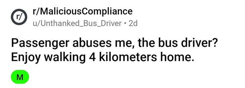 'I told him that I could not drop him off': Bus driver schools rude passenger with deserved malicious compliance