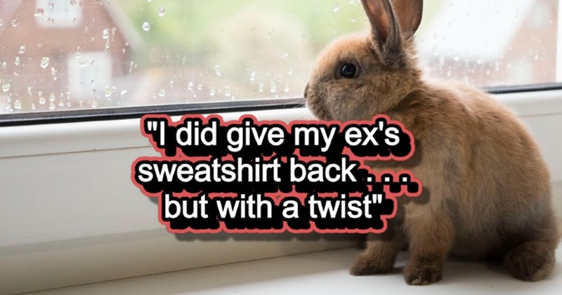 Woman rubs ex-boyfriend's sweatshirt in pet rabbit's litter box before returning it: 'If you held it up to your nose it REEKED':