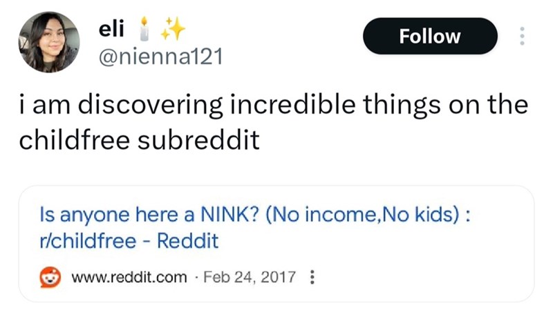 'It's called NEET': Childfree Redditor gets roasted for identifying as a 'No income, no kids' NINK