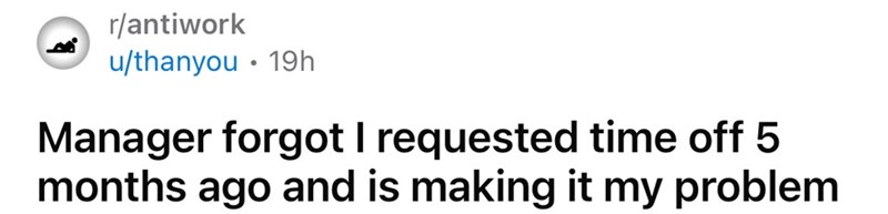 Boss conveniently 'forgets' about employee's long-held time off request: 'Stop putting it on employees to solve staffing issues'