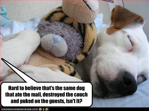 Hard to believe that's the same dog that ate the mail, destroyed the couch and puked on the guests, isn't it?