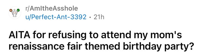Lame son storms out of his mom's Renaissance fair-themed birthday party because she didn't like his fiancée's Disney bachelorette party: 'I just could not stop thinking 'hypocrite''