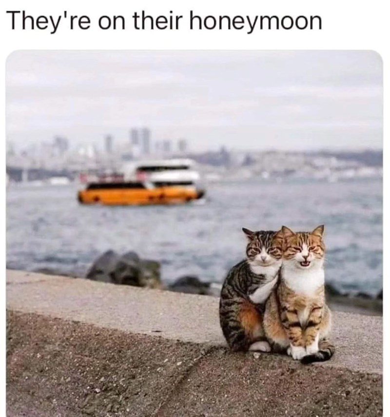 What a pawdorable feline couple. This really needs to be the basic for the next big animated move. A reimagining of lady and the tramp, named trash baby and the clawminal. A heartwarming tale of the rescued house cat and the feral street cat who fall in love and run away together to see the world.