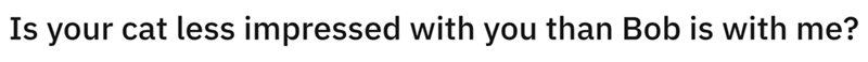 Bob looks really over your nonsense. Bob's face says, "How many times must I put with this incompetence before my hooman servant finally does one thing correctly?" At this point, he's too exasperated to argue.