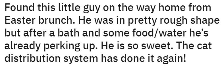 Cat Distribution System Works Hard on Easter, Leading Hooman to Heartwarmingly Rescue Friendly Stray Feline in Need of Meowdical Care