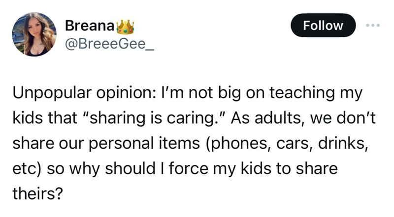 'As adults, we don't share our personal items': Controversial mom rejects the idea that 'sharing is caring'