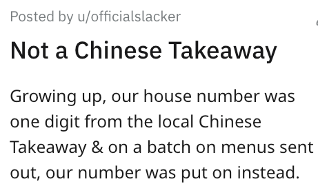 '[My family] is not a Chinese takeaway': Dad gets revenge on a local Chinese restaurant after they refuse to take his family's phone number off of their menus