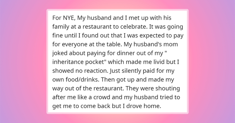 'You are rich, so stop being cheap!': Wife Storms Out of Restaurant After Husband Demands She Foot the Bill with Newly Acquired Inheritance Money
