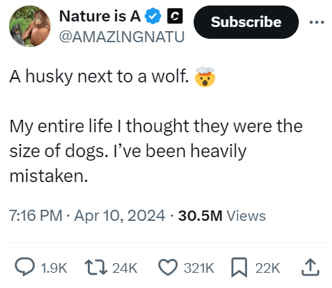 You know, this account may have used the exploding head emoji, but that is not the feeling that we're experiencing when looking at these pictures. Yes, we didn't realize just how big wolves actually are, but knowing that they are so much bigger than doggos… just makes us want to pet them more.
