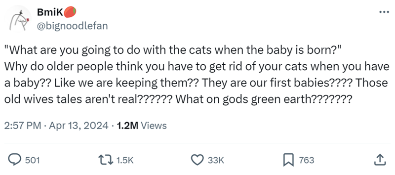 We're pretty sure that every single person who asks this question is someone who has never had pets before – any pets at any point in their lives. You do not throw out one member of your family because another one was born. You make it work. Maybe you get lucky, and your cat and your baby become bet friends. Or maybe you have to keep them separated until the baby is older. Either way, the cat stays.