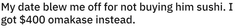 Woman Invites Friend for a Free Meal, He Ghosts Her When She Refuses to Let Him Pick a Restaurant, She Takes Herself Out for a $400 Dinner Instead