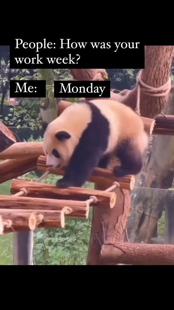 Ah Monday, remember that? The optimism, the lack of a sense of dread? Well, that would be in the outstandingly good case, but nonetheless the true drama only begins on Monday, by Tuesday things begin to look a whole lot worse, both for us and this pawdorable Panda. May the gods of work have mercy on all of us.