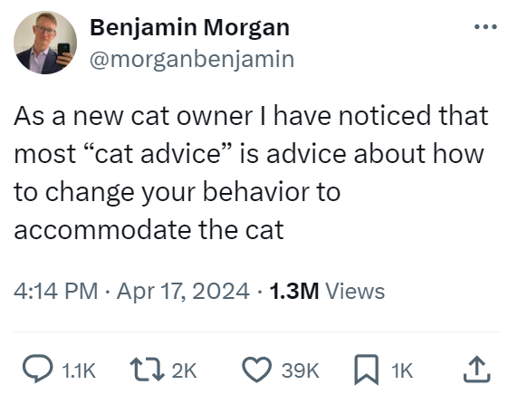 That really is what you end up learning after a long enough time as a cat owner. It's just… easier to cave. Cats are persistent. They will get whatever it is that they want, and they will annoy you until the end of time to do it. If you just… give them what they want, then it's a win-win for all. Sort of.