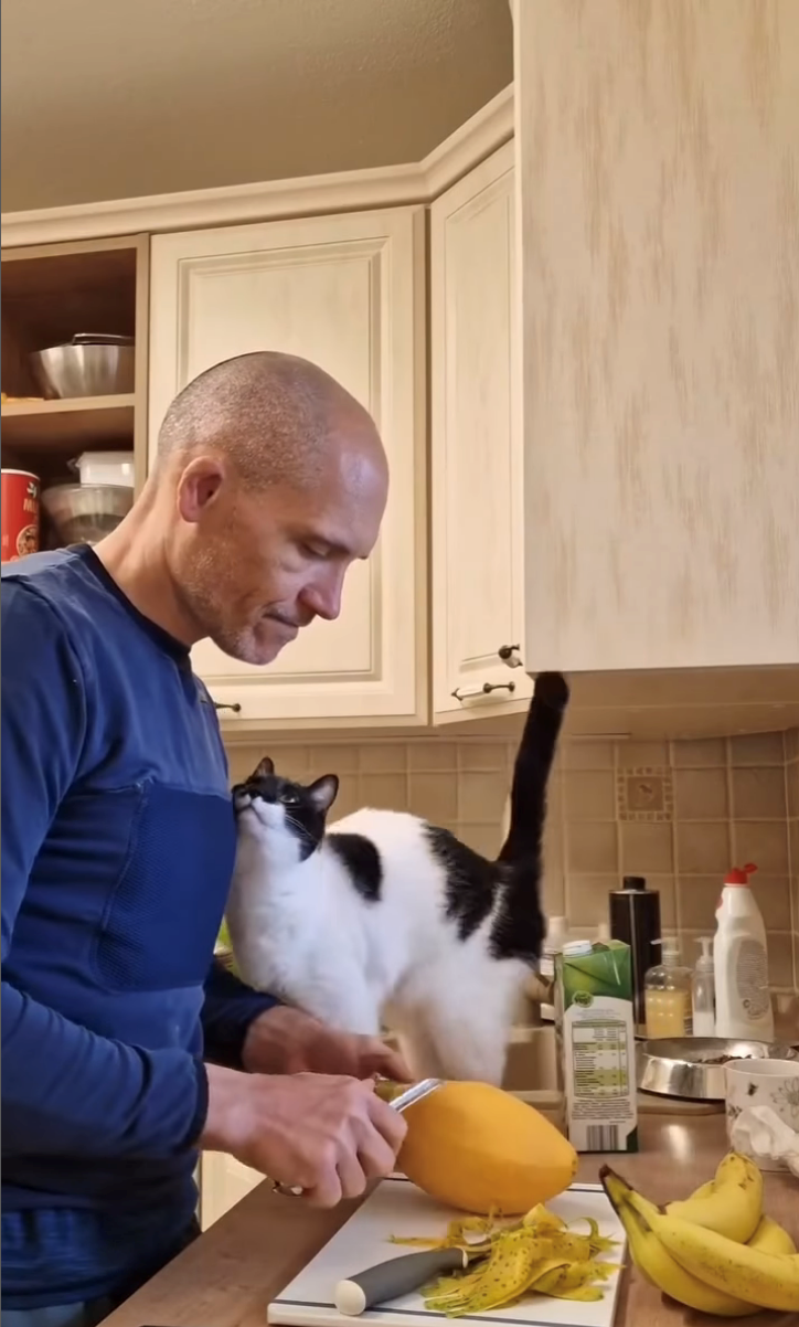 Daddy, please! Just one hug. We know you're busy with your hooman food, but you have two hands, right? One to hold us, and the other to chop your fruit. Pleeeeeeeeeeeeeeeeease, dad!