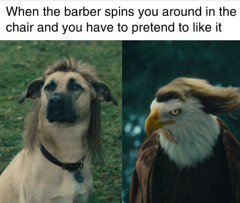 It's quite remarkable how these animals seem to grasp the situation so well. We've all experienced that moment when the barber spins us around in the chair, and despite any reservations we might have, we put on our best poker face to show appreciation.