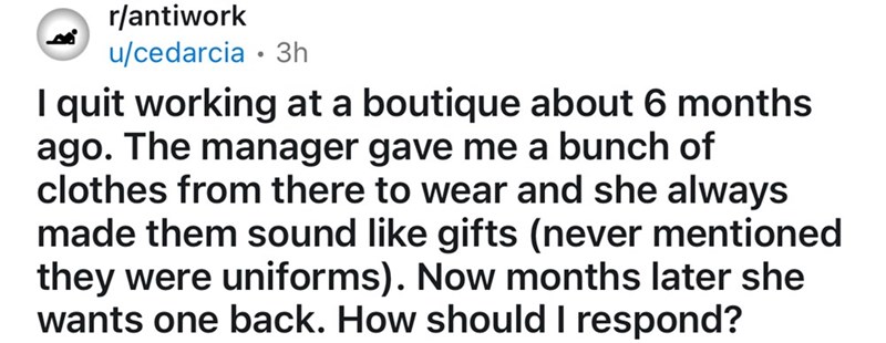 'Block her number and move on': Boutique owner gifts employee jumpsuit from her store, demands it back when employee injures herself