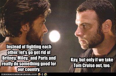 Instead of fighting each other, let's go get rid of Britney, Miley, and Paris and really do something good for our country.