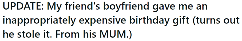 Guy Gives His Girlfriend’s Friend an Overly Expensive Birthday Gift, Which Turns Out That He Stole From His Mom