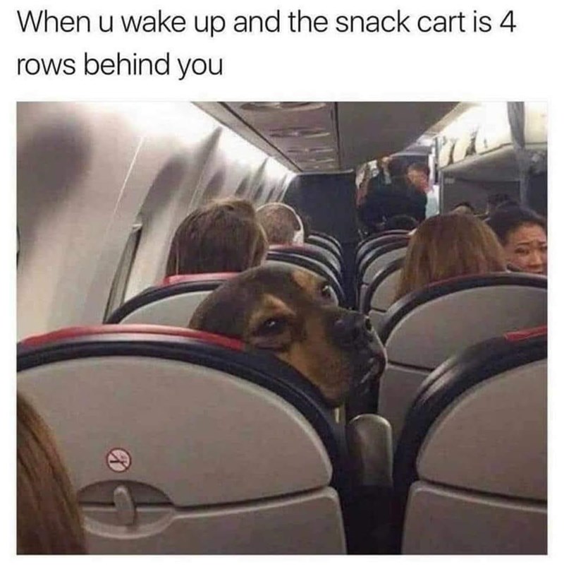 This awwdorable pup perfectly mirrors our behavior on every flight, sneaking a peek behind every few seconds. It's like when you wake up and realize the snack cart is tantalizingly close, just four rows behind you.