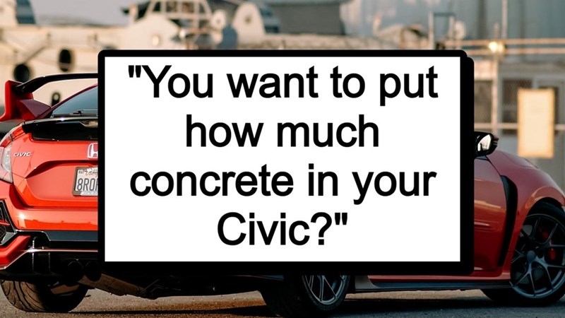 'You want to put how much concrete in your Civic?': Customer insists on loading 1000 lbs. of concrete into the back of their small car despite employee's warnings