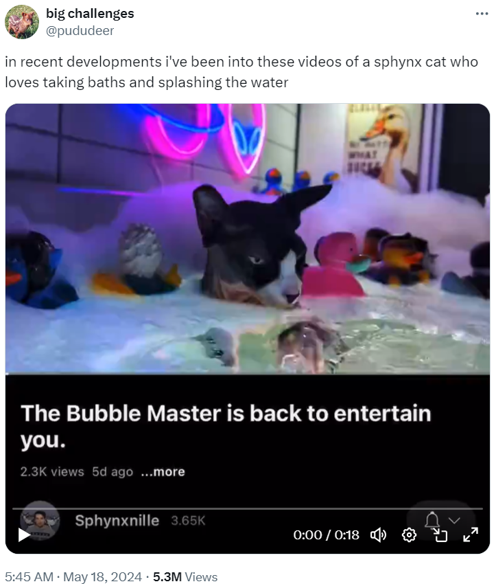 'The bubble master is back': The Internet Discovers A Sphynx Cat Who Loves Baths And Splashes Around Joyously In The Water