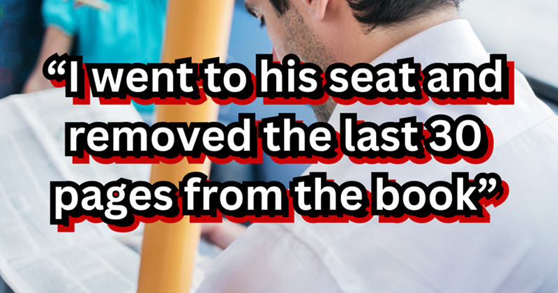 Petty bus-goer gets payback against a seat-thief by stealing the last 30 pages of their book: 'Scorched earth revenge'
