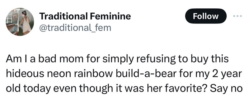 'This bear is cute, you're just a hater': Mom refuses to buy her 2-year-old daughter a $15 rainbow bear from Build a Bear, claims it doesn't fit with her muted aesthetic