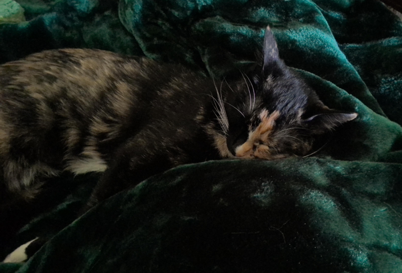 "15y Cora resting after a long arduous day in the coal mines. And, when I say coal mines, I mean napping..."