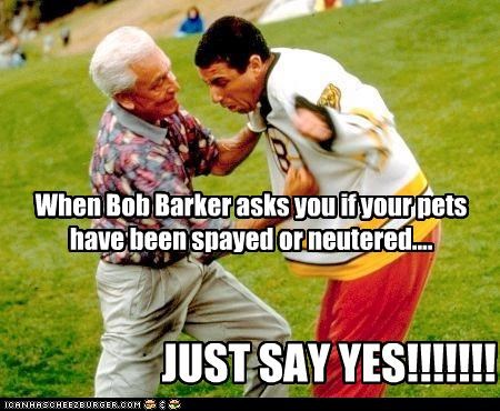 When Bob Barker asks you if your pets have been spayed or neutered....