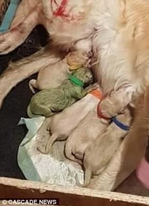 Sutherland told The Sun "The first pup was stuck, so myself and my daughter Claire managed to free him and pull him out safely [...] It was all hands on deck but then as the puppies started to arrive, we noticed that one of the puppies had green fur. We couldn't believe it."