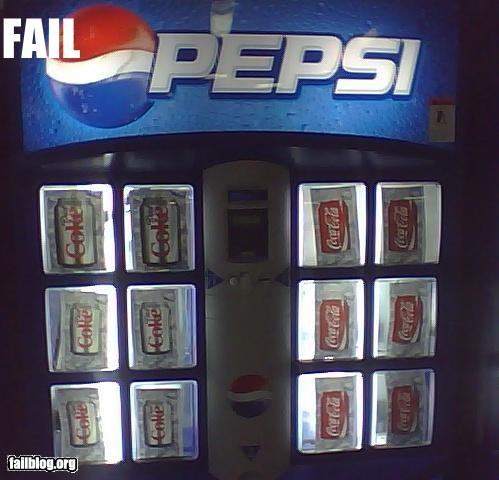 A Pepsi machine carrying exclusively Coca-Cola products.