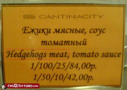 Some genius translated 'meatballs' as 'Hedgehog meat'.