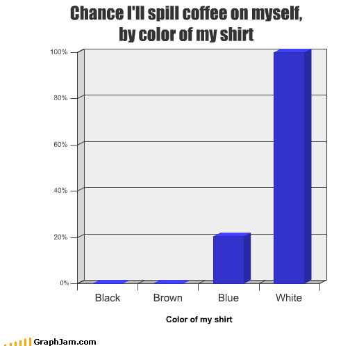 Chance I'll spill coffee on myself, by color of my shirt