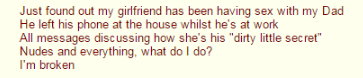 Guy Finds Out That His Girlfriend is F**king His Dad and Turns to the Internet For Advice