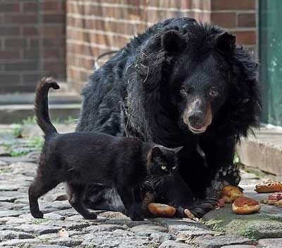 Stray Cat And An Elderly Bear Become BFF At Berlin’s Zoo