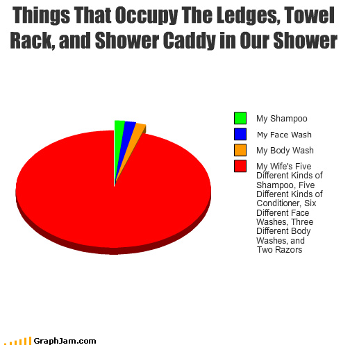 Things That Occupy The Ledges, Towel Rack, and Shower Caddy in Our Shower