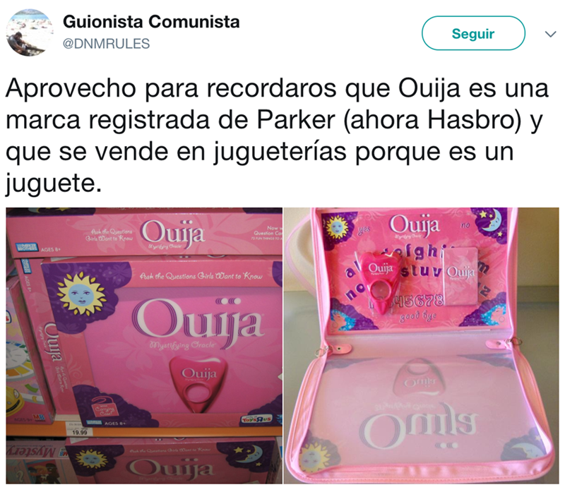 Pues resulta que la Ouija oficialmente es un juguete