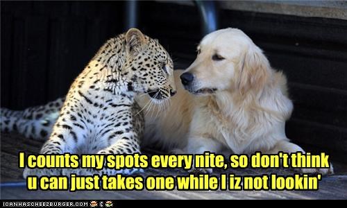 I counts my spots every nite, so don't think u can just takes one while I iz not lookin'.