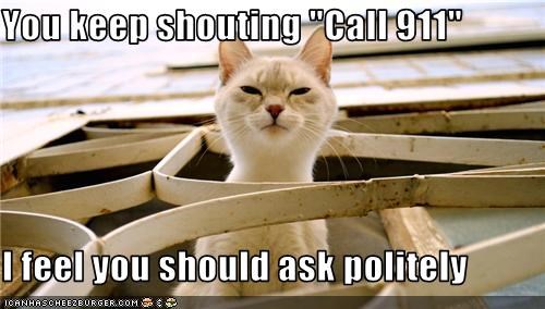 You keep shouting "Call 911" I feel you should ask politely