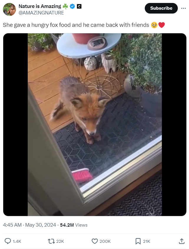 And really, if you have never come across this video before, then you are so not ready for just the amount of foxes that are about to appear in frame. It's not just one or two friends that this little guy brought over. We're pretty sure it's multiple generations of multiple families.
