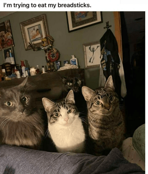 Sigh, having cats means never being able to eat in peace again. You cannot - it is simply impawssible - to train your cats to stop doing thing. You will furrever and always be faced with these cute faces any time you try to eat literally anything.