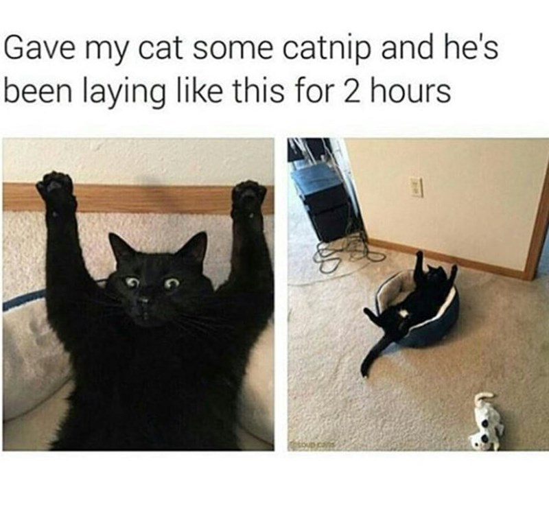 When given catnip, each and every cat is affected differently. Some will start running around, some will slobber all over themselves, and some will, apparently, get stuck. And that's okay. They may be going through an existential crisis, but we get to have the best time laughing and taking pictures of them.