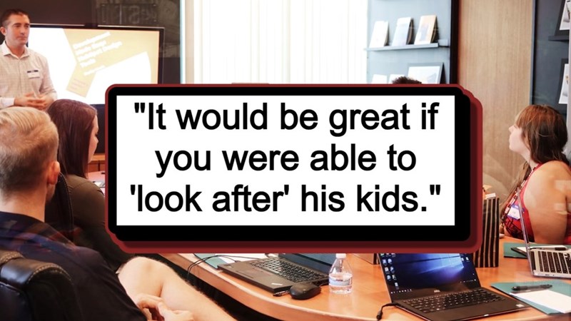 Chairman singles out only female board member, asking her to watch visiting politician's children: 'I do not have any children, but everyone else on the board [does]'