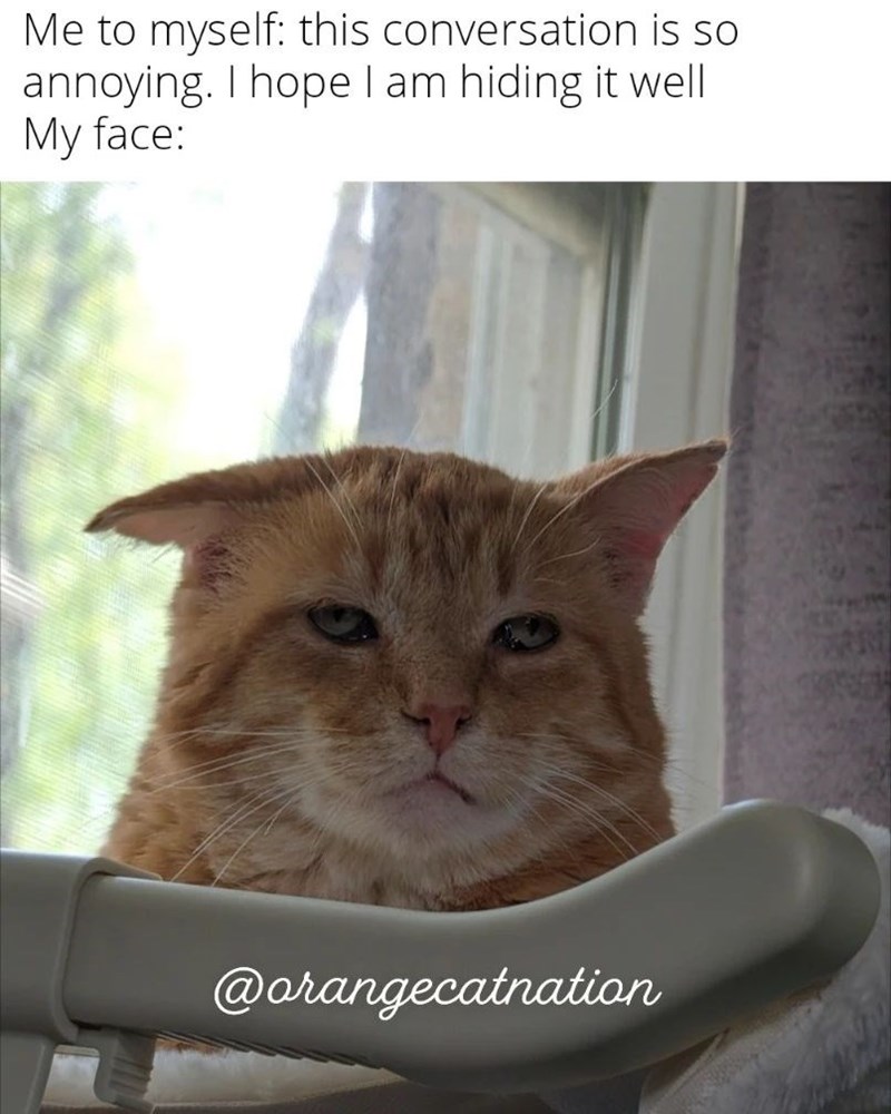 A little reminder of how you might end up looking during the first few small talk conversations you are likely to have upon entering the office. It is ok to not care at all, just know that other people are likely to be aware of how you feel. But hey, they did not have to leave their heart and soul at home, so what do they know.